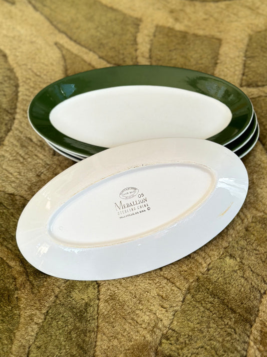 VintageGreen and White Oval Dish Set