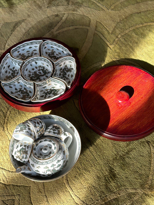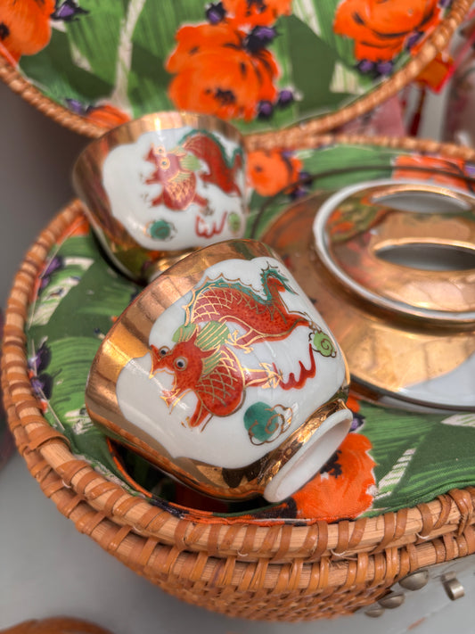 Golden Dragon Rattan Tea Basket Set